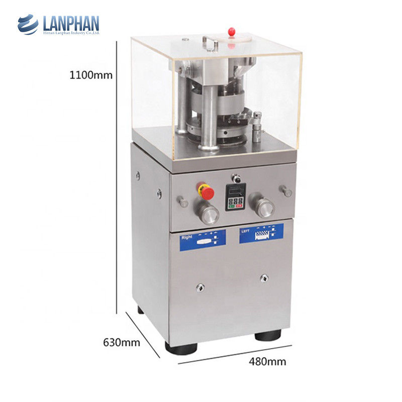Deze machine is een automatische roterende en continue tableteermachine, die korrelige grondstoffen comprimeert tot verschillende tabletten. Het wordt voornamelijk gebruikt bij de productie van tabletten in de farmaceutische industrie, evenals in de chemische, voedingsmiddelen- en elektronica-industrie. De buitenhoes is een volledig gesloten vorm, het materiaal is roestvrij staal en de interne tafel is gemaakt van roestvrij staal. Het oppervlak van de draaitafel is speciaal behandeld om de glans van het oppervlak te behouden en kruisbesmetting te voorkomen, wat voldoet aan de eisen van GMP. De deuren en ramen die zijn uitgerust met transparant glas kunnen de staat van het persen duidelijk observeren en kunnen volledig worden geopend, wat gemakkelijk is voor interne reiniging en onderhoud. Alle controllers en bedieningsonderdelen zijn redelijk gerangschikt. Het frequentieomvormingssnelheidsregelaar wordt gebruikt voor elektrische snelheidsregeling, die gemakkelijk te bedienen, stabiel in rotatie, veilig en nauwkeurig is. Alle transmissie-inrichtingen zijn in de machine geplaatst om de machineonderdelen schoon te houden. Uitgerust met een overbelastingsbeveiliging, kan deze automatisch stoppen wanneer de druk overbelast is.